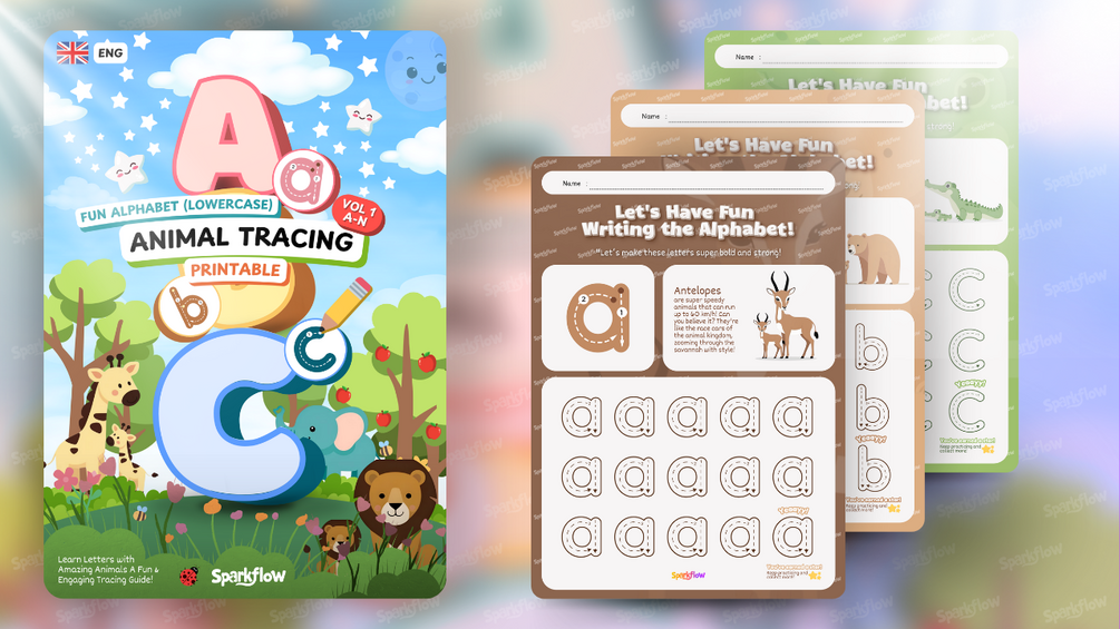 O-Z Tracing Pages β Each letter comes with a cute animal illustration & a fun fact!
